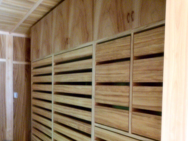 ヤニ松無垢材・楠無垢材・杉無垢材その他樹種で、内装材・家具・建具を製作させていただきました。