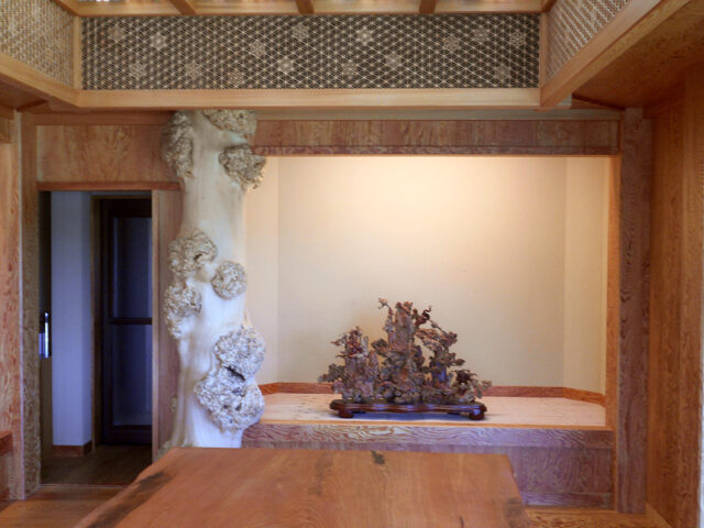 ・ヤニ松床材及び楓変木を使用しております。楓の変木によって醸し出される重厚な質感は、ただただ、美しいです。