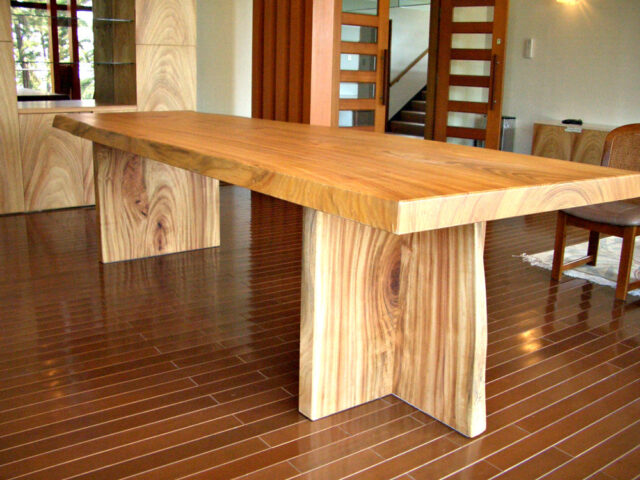 天板と足材、どちらにも楠材を用いることで、木の木目の美しさがより一層際立つテーブルが出来上がりました。